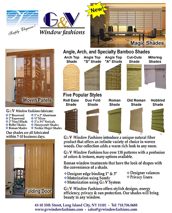 G&V factory customs weaves using the finest materials that made from bamboo, grasses, jutes, paper, and flax into our elegance shades. More Information...